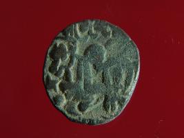 | Description / विवरण | This is a copper coin. The depression on obverse side depicts deity sitting on a horse and holding a spear in his right hand. On reverse side image cannot be identified. Shape is almost circular. Surface is smooth. Appearance is metallic bronze. |