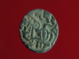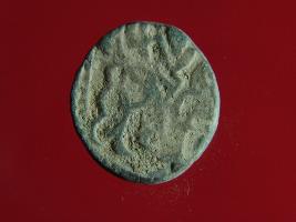 | Description / विवरण | This is a copper coin. The depression on obverse side depicts deity sitting on a horse and holding a spear in his right hand. On reverse side a bull in a sitting position. Shape is almost circular. Surface is smooth. Appearance is metallic bronze. |