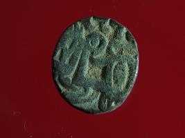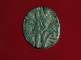 | Description / विवरण | This is a copper coin. The depression on obverse side depicts deity sitting on a horse and holding a trident in his right hand. On reverse side a bull in a standing position. Shape is almost circular. Surface is smooth. Appearance is metallic bronze. |