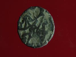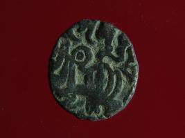 | Description / विवरण | This is a copper coin. The depression on obverse side depicts deity sitting on a horse and holding a spear in his right hand. On reverse side a bull in a sitting position. Shape is almost circular. Surface is smooth. Appearance is metallic bronze. |