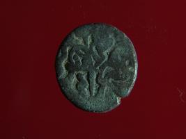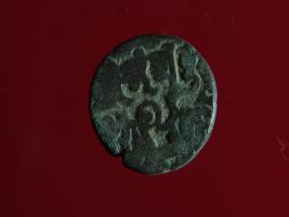 | Description / विवरण | This is a copper coin. The depression on obverse side depicts deity sitting on a horse and holding a spear in his right hand. On reverse side a bull in a sitting position. Shape is almost circular. Surface is smooth. Appearance is metallic bronze. |
