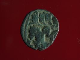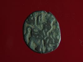 | Description / विवरण | This is a copper coin. The depression on obverse side depicts deity sitting on a horse and holding a spear in his right hand. On reverse side a bull in a sitting position. Shape is almost circular. Surface is smooth. Appearance is metallic bronze. |