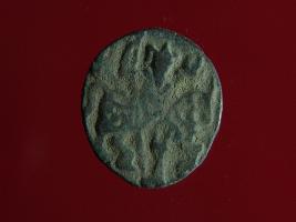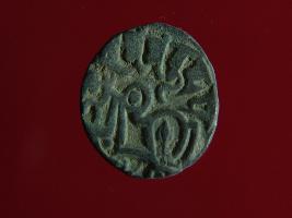 | Description / विवरण | This is a copper coin. The depression on obverse side depicts deity sitting on a horse and holding a spear in his right hand. On reverse side a bull in a sitting position. Shape is almost circular. Surface is smooth. Appearance is metallic bronze. |