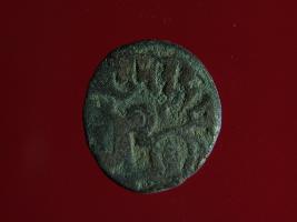 | Description / विवरण | This is a copper coin. The depression on obverse side depicts deity sitting on a horse and holding a spear in his right hand. On reverse side a bull in a sitting position. Shape is almost circular. Surface is smooth. Appearance is metallic bronze. |