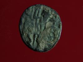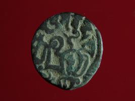 | Description / विवरण | This is a copper coin. The depression on obverse side depicts deity sitting on a horse and holding a spear in his right hand. On reverse side a bull in a sitting position. Shape is almost circular. Surface is smooth. Appearance is metallic bronze. |