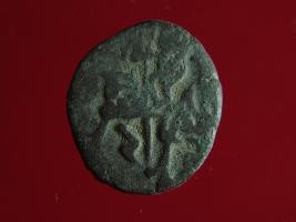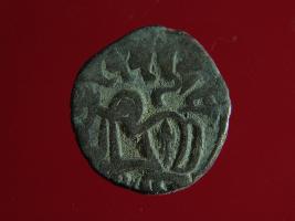| Description / विवरण | This is a copper coin. The depression on obverse side depicts deity sitting on a horse and holding a spear in his right hand. On reverse side a bull in a sitting position. Shape is almost circular. Surface is smooth. Appearance is metallic bronze. |