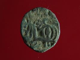 | Description / विवरण | This is a copper coin. The depression on obverse side depicts deity sitting on a horse and holding a spear in his right hand. On reverse side a bull in a sitting position. Shape is almost circular. Surface is smooth. Appearance is metallic bronze. |