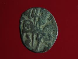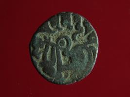 | Description / विवरण | This is a copper coin. The depression on obverse side depicts deity sitting on a horse and holding a spear in his right hand. On reverse side a bull in a sitting position. Shape is almost circular. Surface is smooth. Appearance is metallic bronze. |