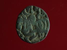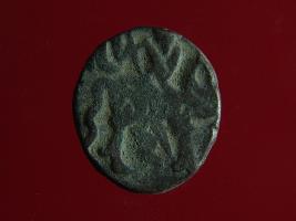 | Description / विवरण | This is a copper coin. The depression on obverse side depicts deity sitting on a horse and holding a spear in his right hand. On reverse side a bull in a sitting position. Shape is almost circular. Surface is smooth. Appearance is metallic bronze. |