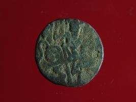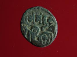 | Description / विवरण | This is a copper coin. The depression on obverse side depicts deity sitting on a horse and holding a spear in his right hand. On reverse side a bull in a sitting position. Shape is almost circular. Surface is smooth. Appearance is metallic bronze. |