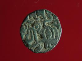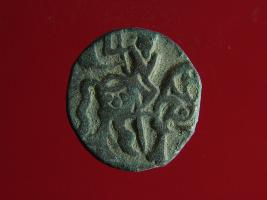 | Description / विवरण | This is a copper coin. The depression on obverse side depicts deity sitting on a horse and holding a spear in his right hand. On reverse side a bull in a sitting position. Shape is almost circular. Surface is smooth. Appearance is metallic bronze. |