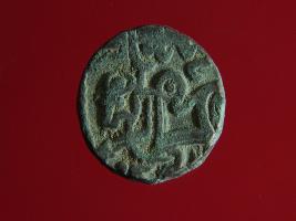 | Description / विवरण | This is a copper coin. The depression on obverse side depicts deity sitting on a horse and holding a trident in his right hand. On reverse side a bull in a standing position. Shape is almost circular. Surface is smooth. Appearance is metallic bronze. |