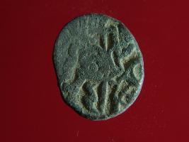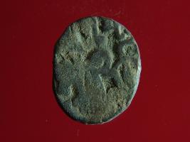 | Description / विवरण | This is a copper coin. The depression on obverse side depicts deity sitting on a horse and holding a spear in his right hand. On reverse side a bull in a sitting position. Shape is almost circular. Surface is smooth. Appearance is metallic bronze. |