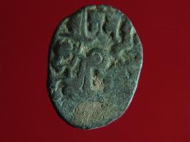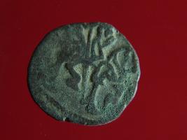 | Description / विवरण | This is a copper coin. The depression on obverse side depicts deity sitting on a horse and holding a spear in his right hand. On reverse side a bull in a sitting position. Shape is almost circular. Surface is smooth. Appearance is metallic bronze. |