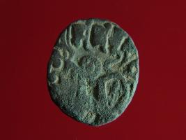| Description / विवरण | This is a copper coin. The depression on obverse side depicts deity sitting on a horse and holding a spear in his right hand. On reverse side a bull in a sitting position. Shape is almost circular. Surface is smooth. Appearance is metallic bronze. |