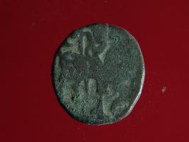 | Description / विवरण | This is a copper coin. The depression on obverse side depicts deity sitting on a horse and holding a spear in his right hand. On reverse side a bull in a sitting position. Shape is almost circular. Surface is smooth. Appearance is metallic bronze. |