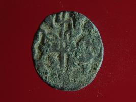 | Description / विवरण | This is a copper coin. The depression on obverse side depicts deity sitting on a horse and holding a trident in his right hand. On reverse side a bull in a standing position. Shape is almost circular. Surface is smooth. Appearance is metallic bronze. |