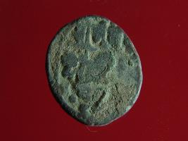 | Description / विवरण | This is a copper coin. The depression on obverse side depicts deity sitting on a horse and holding a spear in his right hand. On reverse side a bull in a sitting position. Shape is almost circular. Surface is smooth. Appearance is metallic bronze. |