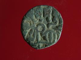 | Description / विवरण | This is a copper coin. The depression on obverse side depicts deity sitting on a horse and holding a spear in his right hand. On reverse side a bull in a sitting position. Shape is almost circular. Surface is smooth. Appearance is metallic bronze. |