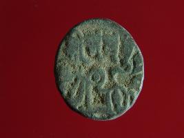 | Description / विवरण | This is a copper coin. The depression on obverse side depicts deity sitting on a horse and holding a spear in his right hand. On reverse side a bull in a sitting position. Shape is almost circular. Surface is smooth. Appearance is metallic bronze. |