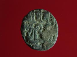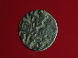 | Description / विवरण | This is a copper coin. The depression on obverse side depicts deity sitting on a horse and holding a spear in his right hand. On reverse side a bull in a sitting position. Shape is almost circular. Surface is smooth. Appearance is metallic bronze. |