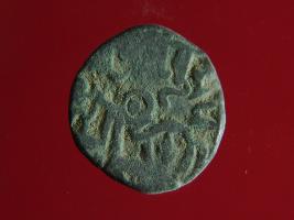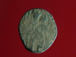 | Description / विवरण | This is a copper coin. The depression on obverse side depicts deity sitting on a horse and holding a spear in his right hand. On reverse side image can not be shown clearly. Shape is almost circular. Surface is smooth. Appearance is metallic bronze. |
