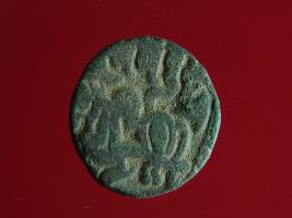 | Description / विवरण | This is a copper coin. The depression on obverse side depicts deity sitting on a horse and holding a spear in his right hand. On reverse side a bull in a sitting position. Shape is almost circular. Surface is smooth. Appearance is metallic bronze. |