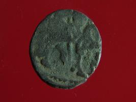 | Description / विवरण | This is a copper coin. The depression on obverse side depicts deity sitting on a horse and holding a spear in his right hand. On reverse side a bull in a sitting position. Shape is almost circular. Surface is smooth. Appearance is metallic bronze. |