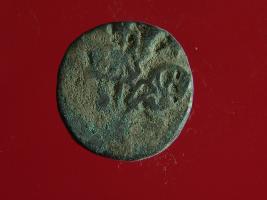 | Description / विवरण | This is a copper coin. The depression on obverse side depicts deity sitting on a horse and holding a spear in his right hand. On reverse side a bull in a sitting position. Shape is almost circular. Surface is smooth. Appearance is metallic bronze. |