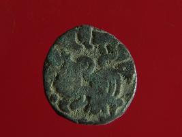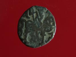 | Description / विवरण | This is a copper coin. The depression on obverse side depicts deity sitting on a horse and holding a spear in his right hand. On reverse side image can not be shown clearly. Shape is almost circular. Surface is smooth. Appearance is metallic bronze. |