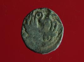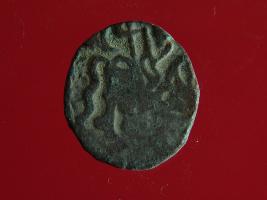 | Description / विवरण | This is a copper coin. The depression on obverse side depicts a deity sitting on a horse and holding a spear in his right hand and on reverse side a bull in a sitting position. Shape is circular. Surface is smooth. Appearance is metallic bronze. Hard patina deposited on it. |