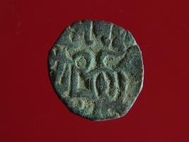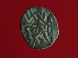 | Description / विवरण | This is a copper coin. The depression on obverse side depicts deity sitting on a horse and holding a spear in his right hand. On reverse side bull in a sitting position. Shape is almost circular. Surface is smooth. Appearance is metallic bronze. |
