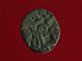 | Description / विवरण | This is a copper coin. The depression on obverse side depicts deity sitting on a horse and holding a trident in his right hand. On reverse side image can not be shown clearly. Shape is almost circular. Surface is smooth. Appearance is metallic bronze. |