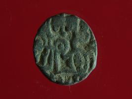 | Description / विवरण | This is a copper coin. The depression on obverse side depicts bull in a sitting position and on reverse side image not shown clearly. Shape is almost circular. Surface is smooth. Appearance is metallic bronze. |