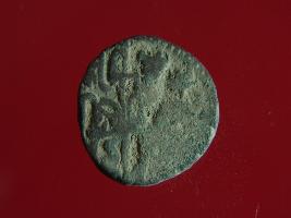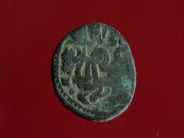 | Description / विवरण | This is a copper coin. The depression on obverse side depicts deity sitting on a horse and holding a spear in his right hand. On reverse side bull in a sitting position. Shape is almost circular. Surface is smooth. Appearance is metallic bronze. |