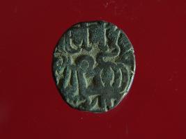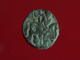 | Description / विवरण | This is a copper coin.The depression on obverse side depicts a deity sittting on a horse and holding a spear in his right hand and on reverse side a bull in a sitting position. Shape is circular. Surface is smooth. Appearance is metalic bronze. Hard patina deposited on it. |