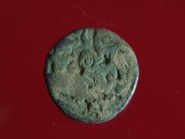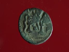 | Description / विवरण | This is a copper coin.The depression on obverse side depicts a deity sittting on a horse and holding a spear in his right hand and on reverse side a bull in a sitting position. Shape is circular. Surface is smooth. Appearance is metalic bronze. Hard patina deposited on it. |