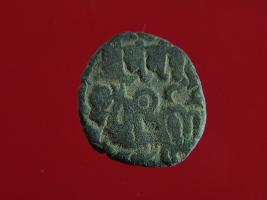 | Description / विवरण | This is a copper coin. The depression on obverse side depicts deity sitting on a horse and holding a spear in his right hand. On reverse side bull in a sitting position. Shape is almost circular. Surface is smooth. Appearance is metallic bronze. |