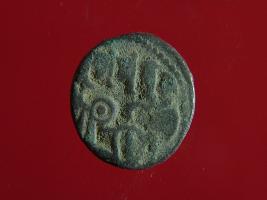 | Description / विवरण | This is a copper coin.The depression on obverse side depicts a deity sittting on a horse and holding a spear in his right hand. On reverse side a bull in a sitting position and some inscription mark written above them. Shape is circular. Surface is smooth. Appearance is metalic bronze. Hard patina deposited on it. |