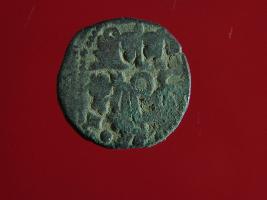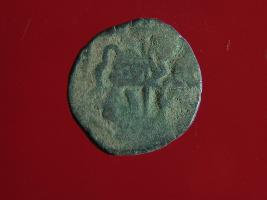 | Description / विवरण | This is a copper coin. The depression on obverse side depicts deity sitting on a horse and holding a spear in his right hand. On reverse side bull in a sitting position. Shape is almost circular. Surface is smooth. Appearance is metallic bronze. |