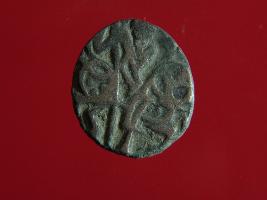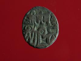 | Description / विवरण | This is a copper coin. The depression on obverse side depicts deity sitting on a horse and holding a spear in his right hand and on reverse side a bull in a sitting position and some inscription mark written above them. Shape is circular. Surface is smooth. Appearance is metallic bronze. Hard patina deposited on it. |
