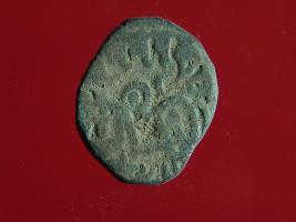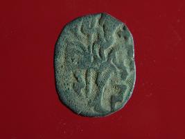 | Description / विवरण | This is a copper coin. The depression on obverse side depicts deity sitting on a horse and holding a spear in his right hand. On reverse side a bull in a sitting position. Shape is circular. Surface is smooth. Appearance is metallic bronze. |