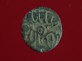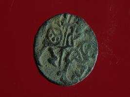 | Description / विवरण | It is a coin made of copper. The depression on obverse side depicts a deity sitting on a horse and holding a spear in his right hand. On reverse side bull in a sitting position. Shape is circular. Surface is smooth. Appearance is metallic bronze. |