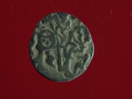 | Description / विवरण | It is a coin made of copper. The depression on obverse side depicts a deity sitting on a horse and holding a spear in his right hand. On reverse side bull in a sitting position. Shape is circular. Surface is smooth. Appearance is metallic bronze. |
