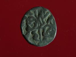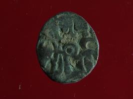 | Description / विवरण | It is a coin made of copper. The depression on obverse side depicts a deity sitting on a horse and holding a spear in his right hand. On reverse side bull in a sitting position. Shape is circular. Surface is smooth. Appearance is metallic bronze. |