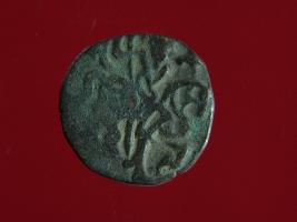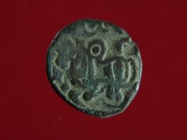 | Description / विवरण | It is a coin made of copper. The depression on obverse side depicts a deity sitting on a horse and holding a spear in his right hand. On reverse side bull in a sitting position. Shape is circular. Surface is smooth. Appearance is metallic bronze. |