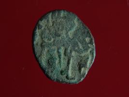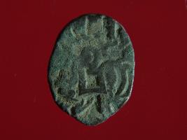 | Description / विवरण | It is a coin made of copper. The depression on obverse side depicts a deity sitting on a horse and holding a spear in his right hand. On reverse side bull in a sitting position. Shape is circular. Surface is smooth. Appearance is metallic bronze. |
