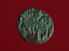 | Description / विवरण | It is a coin made of copper. The depression on obverse side depicts a deity sitting on a horse and holding a spear in his right hand. On reverse side bull in a sitting position. Shape is circular. Surface is smooth. Appearance is metallic bronze. |