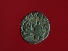 | Description / विवरण | It is a coin made of copper. The depression on obverse side depicts a deity sitting on a horse and holding a spear in his right hand. On reverse side bull in a sitting position. Shape is circular. Surface is smooth. Appearance is metallic bronze. |