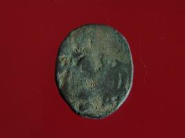 | Description / विवरण | It is a coin made of copper. The depression on obverse side depicts a deity sitting on a horse and holding a spear in his right hand. On reverse side bull in a sitting position. Shape is circular. Surface is smooth. Appearance is metallic bronze. |